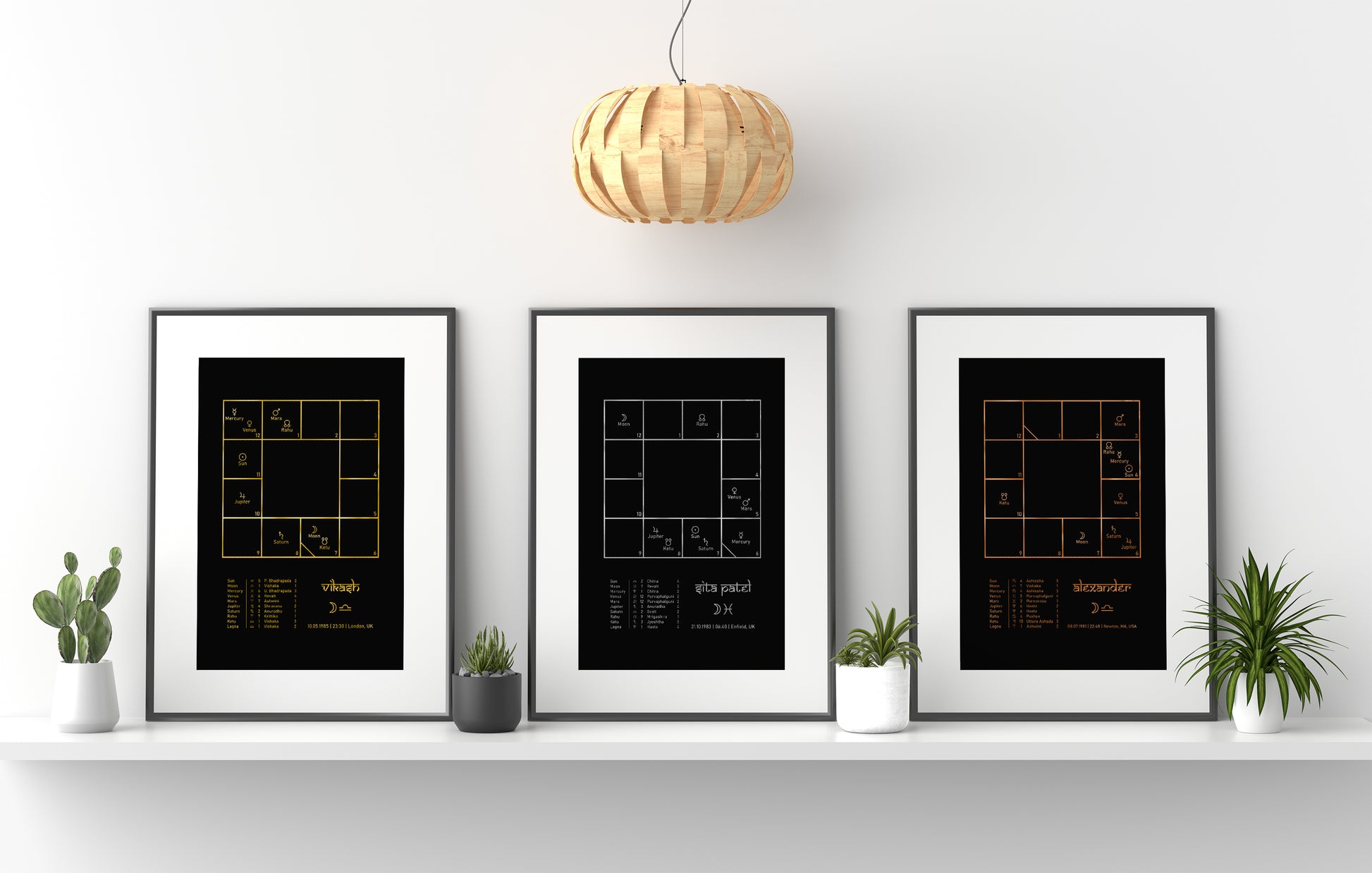 We pride ourselves most on personal service and that every birth chart is individually drawn from scratch by us, they are never computer-generated which ensures we can provide the best quality and accuracy for each birth chart we make. All of our designs are unique and personalised showing the planetary positions from the exact day, time and location of your birth. We want to make them truly magical gifts that can spark intrigue. Each can be treasured for a lifetime and through them, one can uncover so much.